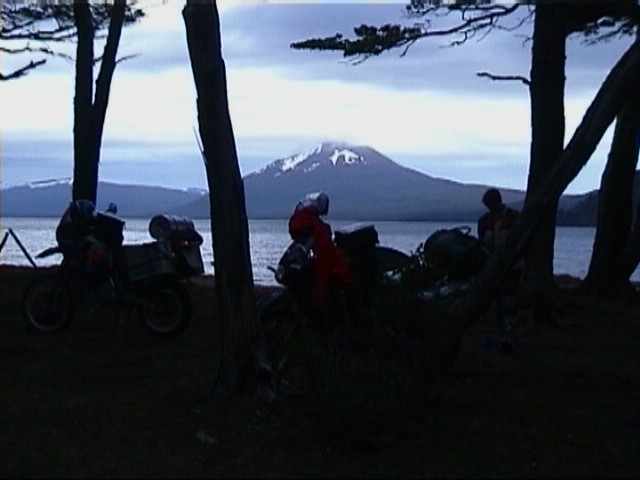 14.November 2000 in Ushuaia/Feuerland Ueber die Zahlreichen Gaestebucheintragungen, die wir in Ushuaia vorgefunden haben, freuen wir uns sehr. Wir bedanken uns bei allen mit dem nachfolgenden Bericht. Gestern sind wir nach 4600 km seit Buenos Aires in Ushuaia auf Feuerland angekommen. 10 Tage Abenteuer liegen hinter uns. Die Abenteuer begannen zwei Steunden nach der letzten Tagebuchaufzeichnung in Puerto Madryn. Innerhalb von wenigen Minuten fiel dasThermometer um fast 20 Grad unterwegs auf einer mittelpraechtigen Piste zu einer Pinguinkolonie. Es wurde eisig, neblig und fing an zu regnen. Am Ende verbrachten wir die Nacht auf Einladung eines Campesinos in einem Schuppen mit einer Feuerstelle und einem riesigen Schafteil, das wir ueber dem Feuer brieten, waehrend draussen ein Unwetter tobte. Am naechsten Tag brauchten wir fuer die 20 km zurueck zur Hauptstrasse drei Stunden. Die aufgeweichte Lehmpiste war absolut unfahrbar, Schleuderpartien und Stuerze inklusive. Dann wurde das Wetter wieder besser. In Comodoro Rivadavia bestellten wir neue Reifen fuer Ushuaia. Weiter suedlich bewunderten wir die Reste eines versteinerten Waldes, der dort vor ca. 150 Millionen Jahren gestanden hatte. Wir besuchten eine Pinguinkolonie - Tausende von Pinguinen, die in Erdhoehlen an Land Ihre Jungen ausbrueten - und freuten uns unseres Lebens bis es zum zweiten Mal an fing zu regnen. Nun schon nach der Ueberfahrt auf Feuerland auf einem wildromantischen Platz (Bild 1) am Lago Blanco. ![]() Wir hatten nicht rechtzeitig eingekauft und mussten uns von den uebriggebliebenen kuemmerlichen Resten ernaehren. Das klingt unglaublich, wird aber schnell Wirklichkeit, wenn der naechste Laden ca 60 km Piste entfernt ist. Zum Glueck fingen wir zwei Fische zum Fruehstueck, sonst waere es bei Tee geblieben. Es regnete weiter und die Piste war, wie schon gehabt, wieder sehr lehmig und rutschig, einfach saumaessig. Wir hatten uns einen kleinen Grenzuebergang von Chile nach Argentinien - die sich Feuerland teilen - ausgesucht, um mehr als 200 km Umweg zu sparen. Die Piste wurde zum lehmigen Feldweg 3. Ordnung. Zwei seifenaehnliche Steilauffahrten brachten mich in die Naehe eines Herzinfarktes. Es war eher Trial mit vorheriger Streckenbesichtigung als Kilometer-Machen. Alles heil ueberstanden, kamen wir an den Grenzfluss Bellavista, dessen befestigte Ueberfahrt weggerissen war. Zurueck ging nicht mehr und vorwaerts schien es auch unmoeglich. Am Ende entschieden wir uns dazu, eine Flussdurchfahrt zu wagen. Das hiess, die Durchfahrt zu Fuss erkunden, Gepaeck abbauen, ruebertragen. Und das alles bei einer Wassertemperatur zwischen 6 und 8 Grad und Graupelregen von oben. Die Transalp bewies ihre U-Boot-Qualitaeten.