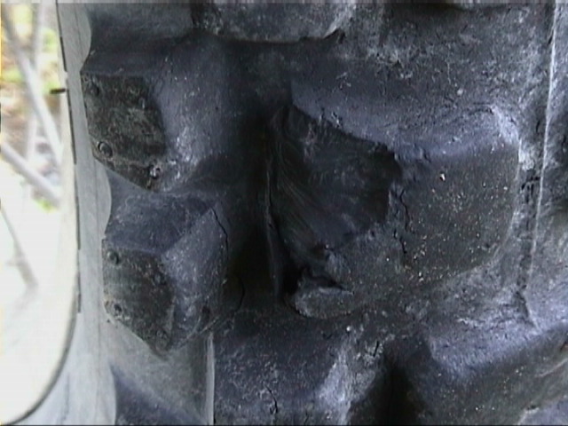 Die Schwindelfreiheit hat geholfen, am Abgrund - manchmal nicht mehr als einen halben Meter entfernt - entlang zu balancieren, das Gottvertrauen dafuer gesorgt, dass in diesen Momenten kein Auto entgegenkam. Sonst haette der Reisebericht ganz ploetzlich zu Ende sein koennen. Ende gut, alles gut. Nach dieser Strecke fuehle ich mich wie mit Enduro-Abitur. Nur der Hinterreifen hat maechtig gelitten. Nach dieser Tortur noch nicht einmal 3000 km alt und schon fast am Ende. Alles sieht irgendwie zerfetzt aus, ein Teil der Stollen abgerissen.