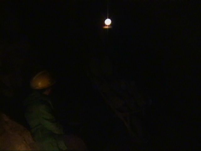 Vor Ort. Nach 500 Metern bis 2 Kilometern engster Gaenge, nicht hoeher als einssechzig, manchmal nur einszwanzig, kaum einmal die Moeglichkeit, sich aufzurichten, ueber glitschige Stufen bergauf, bergab, an dunklen, nicht einsehbaren Abgruenden vorbei, ueber Geroell hoch, durch enge Tunnel durch, mal nur ein Loch, auf dem man auf allen Vieren durch muss. Und dann vor Ort. Hier ist alles nasskalt, feucht, schmierig. Der Berg ist durchloechert wie Schweizer Kaese und sinkt in jeder Regenzeit mehrere Meter in sich zusammen. Vor Ort wird mit Hammer und Meissel gearbeitet. Ist eine metallfuehrende Ader entdeckt, so wird Gesteinsbrocken fuer Gesteinsbrocken mit schierer Koeperkraft herausgehauen.