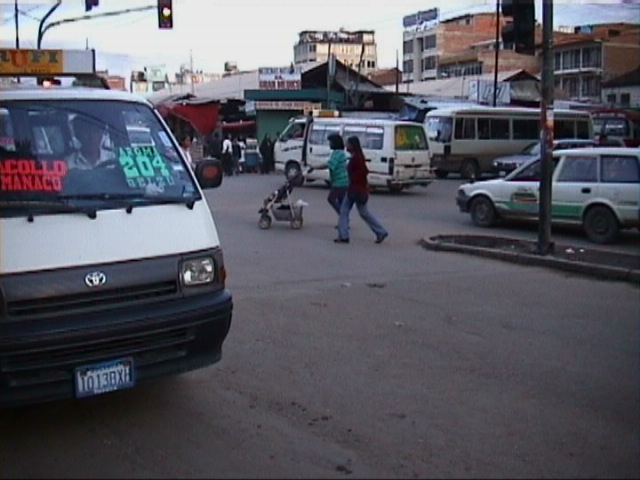Nach Potosi war Sucre, die nominelle Hauptstadt Boliviens, aber heute nur noch Sitz des hoechsten Gerichts, eine Erholung. Sie liegt in 2700 Hoehe und hat etwas ueber 100 000 Einwohner. Eine gepflegte Stadt aus der spanischen Kolonialzeit, die in manchen Vierteln so sauber und aufgeraeumt ist, dass man glaubt, in Spanien zu sein. Nachdem es viel regnete, beschaeftigte uns schnell eine andere Frage, naemlich wie wir aus Sucre wieder heraus nach Cochabamba kommen wuerden. So unglaublich es klingt, die Stadt ist auf dem Landweg nur ueber Pisten zu erreichen, die in der Regenzeit als erste ihren Geist aufgeben. Die 150 km Asfaltstrasse zurueck nach Potosi half auch nicht viel, weil es von dort aus auch nur Pisten gibt. Die Auskunft vom Busbahnhof am Aufbruchsmorgen war positiv. Die Busse von Cochabamba seien unterwegs und wuerden gegen 10 Uhr erwartet. Der Start sah vielversprechend aus. Der Platz am Ausgang der Stadt, an dem Lastwagen und Busse Konvois bilden, um sich auf der Strecke gegenseitig unterstuetzen zu koennen, war ein solches Schlammloch, dass ich schon abwinken wollte. Zum Glueck habe ich es nicht getan, sonst saessen wir wegen der nachfolgenden Unwetter vielleicht heute noch dort. Die anschliessende Fahrt war ein Lehrstueck. Ich meine nicht im Enduro-Fahren. Das auch. Nein, ein Lehrstueck ueber die Probleme des bolivianischen Strassenbaus. Die Piste ging durch das Tal am Rio Chico entlang. Wie in allen anderen Flusstaelern auch, gehen in dieser Jahreszeit alle 1 bis 2 Kilometer Bergrutsche oder Schlammlawinen von den steilaufragenden Geroellbergen auf die Pisten ab. Raeummaschinen, die staendig im Einsatz sind, schieben die Pisten notduerftig wieder frei. Wo einmal gerade keine Bergrutsche sind, werden die Pisten durch Wasser von oben und unten so ausgehoehlt, dass Busse und Lastwagen in Zentimeterarbeit am Abgrund vorbeizirkeln, wenn nicht ueberhaupt die ganze Trasse einmal wieder weggeschwemmt ist. Ein Kilometer ausgebaute Strasse soll unter diesen Verhaeltnissen das Doppelte eines Strassenkilometers in den USA kosten. Mir kommt das eher knapp gerechnet vor. Spaeter fuehrte die Piste in die Berge. Die Verhaeltnisse wurden besser. aber daraus eine Strasse zu bauen, wird auch nicht billiger. Am Ende der 230 km Piste, an der Einmuendung in die Asfaltstrecke Santa Cruz - Cochabamba, uebernachteten wir in einem Hotel, das nichts von dem hatte, was ein Hotel eigentlich ausmacht, weder Gaestezimmer, noch Betten, noch Toiletten, die diesen Namen verdient haetten. Selbst Zaehneputzen fiel unter diesen Bedingungen aus. Den Rest haben wir hinter dem Haus erledigt. Die Einfahrt nach Cochabamba, eine Grossstadt mit ueber 700 000 Einwohnern, war ein Erlebnis fuer sich. Der ganze oertliche Verkehr und der ganze Fernverkehr aus und in Richtung Santa Cruz, der groessten Stadt Boliviens, fuehrt durch einen Indio-Markt. Mehr Stop als Go mitten durch Gemuesestaende, Garkuechen, fliegende Haendler. Durch knietiefe Strassenloecher. Die Reifen der Lastwagen und Busse im Zentimeterabstand, diesmal nicht am Abgrund, sondern an Pfirsichkoerben, Gemuesebergen oder gebratenen Haehnchenschenkeln vorbei. Tag fuer Tag. Einfach unvorstellbar. Ich bin dort nicht noch einmal gewesen, sondern habe den Verkehr an einer x-beliebigen Kreuzung fuer einige Minuten aufgenommen.