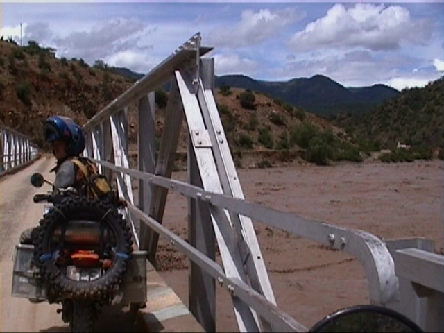 5. Teilbericht 3. Etappe aus La Paz, Hauptstadt Boliviens in 3700 m Hoehe, nach knapp 4 Monaten Reisezeit und ca 17 000 km Strecke. Alle , die schon auf eine Fortsetzung der Reiseberichte gewartet haben, sollen Ihre Beschwerden an Montezuma richten, dessen Rache mich in La Paz fuer mehrere Tage niedergestreckt hat. Ich erspare mir Einzelheiten des Krankheitsbildes. Nur soviel. So asketisch, wie ich jetzt aussehe, bin ich in Wirklichkeit gar nicht. Apropos Aussehen. Viele Tagebuchleser haben um ein Foto von mir gebeten. Hier ist es. Der Autor nach seiner Ankunft am Lago Chungara kurz vor der bolivianischwen Grenze (s.u.) . Zwischen seinen chilenischen Freunden Carlos und Efrain. ![]() Die Gesichtsmaske ist gegen die Kaelte auf 4500 m. Hoehe. Seit dem letzten Bericht ist bekannt, dass eine Einreise nach Bolivien auch in die Hose gehen kann. Nun ist sie mir im zweiten Anlauf gelungen. Von Calama ueber Tocopilla an der Pazifikkueste nach Norden ueber Iquique, Arica, dann nach Osten hoch in die Anden, ueber Putre und hinter dem Lago Chungara ueber die Grenze nach Oruro. Von dort ging die Fahrt dann weiter ueber Potosi, Sucre, Cochabamba nach La Paz. Diejenigen, die ueber einen tlas verfuegen, werden sich jetzt sagen."Meine Guete, immer nur Hauptstrassen.". Recht haben sie. Nur dass hier die Hauptstrassen oft genug nur einspurige Pisten mit Kiesgrubencharakter sind. Die in der Regenzeit immer wieder geschlossen werden muessen, weil Bergrutsche ueber sie hinweggegangen sind oder Fluesse sie weggerissen haben. Von weggeschwemmten Bruecken und unpassierbaren Flussdurchfahrten ganz zu schweigen. So hat zum Beispiel 10 Tage, nachdem ich von Arica an der Pazifikkueste aus in die Anden aufgebrochen bin, ein Unwetter die Bruecken auf dieser Strecke mitgenommen. Diese einzige, ordentlich ausgebaute und fuer den Lastverkehr geeignete Verbindung Boliviens zum Pazifik ist nun bereits seit einigen Tagen unterbrochen. Bei der Strecke Sucre - Cochabamba war es knapper. Da haben nur 2 Tage gefehlt und der Rio Chico - im nachfolgenden Foto 48 Stunden vorher - haette unsere Reiseplaene versenkt.